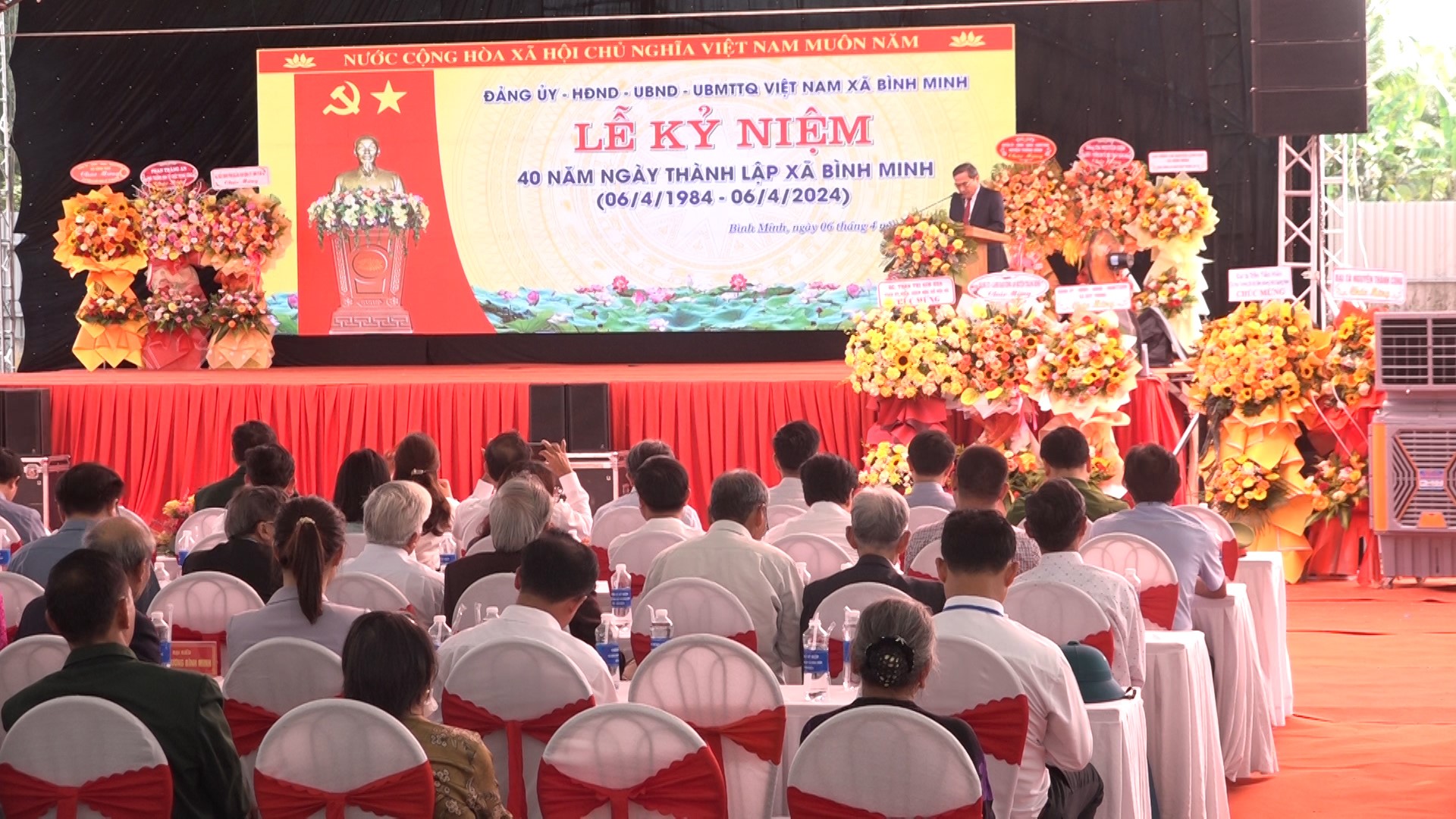 Phát biểu tại lễ kỷ niệm, đồng chí Phan Công Vỹ - TUV, Bí thư Huyện ủy đánh giá cao những thành tựu mà Đảng bộ, chính quyền và nhân dân xã Bình Minh đã đạt được trong chặng đường 40 năm hình thành và phát triển. Bí thư Huyện ủy yêu cầu địa phương tiếp tục xác định phát triển kinh tế biển, thương mại - dịch vụ là nhiệm vụ trọng tâm trong phát triển kinh tế, nâng cao đời sống nhân dân, từ đó tạo động lực để phấn đấu xây dựng Bình Minh trở thành đô thị loại V vào năm 2025.