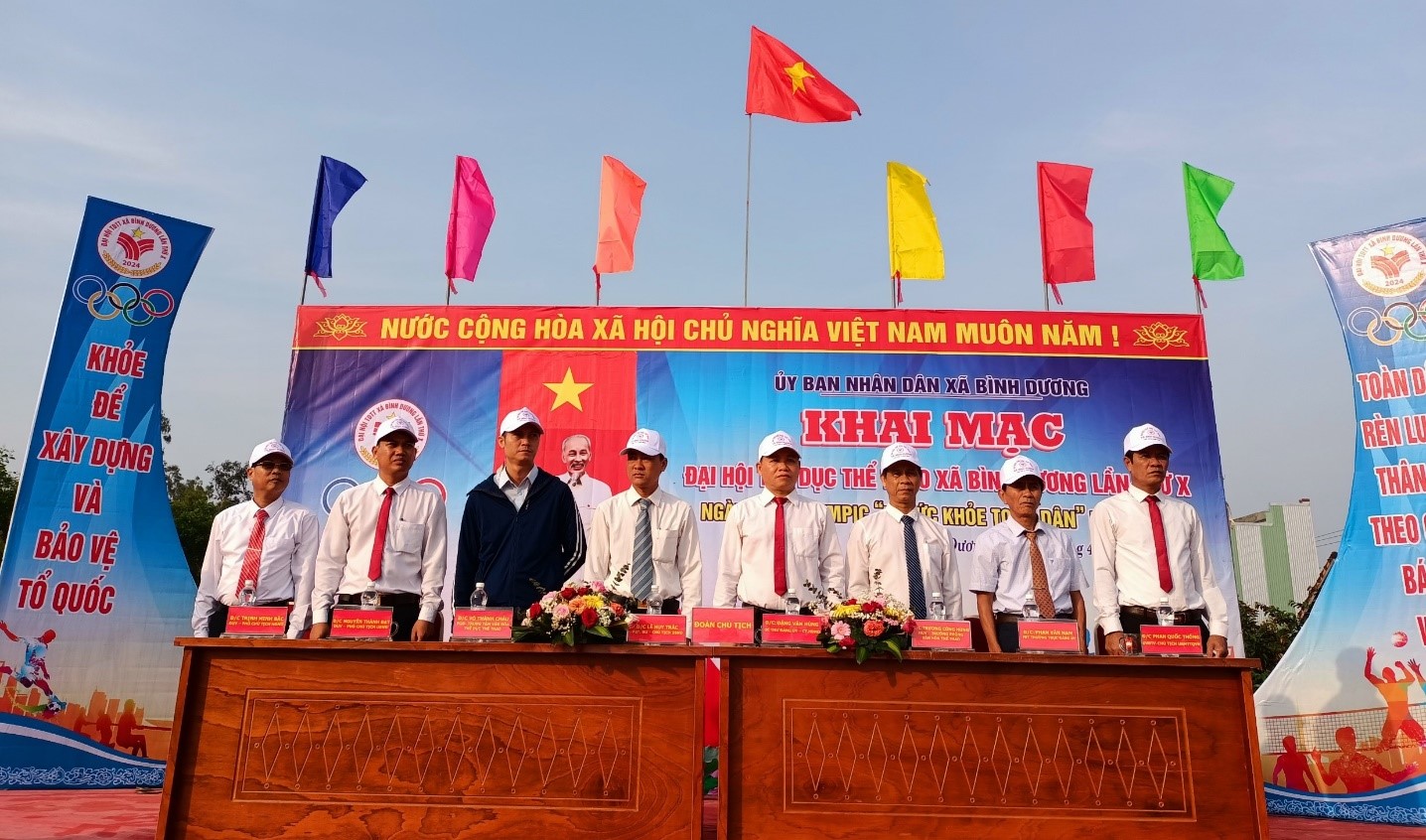 Tại buổi lễ, hàng trăm vận động viên, cán bộ, chiến sĩ, giáo viên, học sinh và nhân dân xã đã tham gia diễu hành qua lễ đài và chạy hưởng ứng “Ngày chạy Olympic vì sức khỏe toàn dân”. Đại hội TD -TT xã Bình Dương diễn ra trong từ tháng 2 đến tháng 9 với khoảng 1.000 vận động viên của 4 thôn tham gia thi đấu ở 6 môn. Trong đó, có 3 môn thi bắt buộc gồm bóng chuyền, bóng đá, điền kinh.