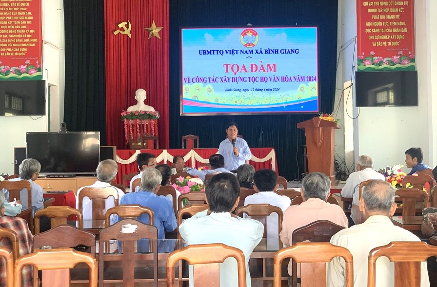 Kết luận buổi toạ đàm, Ông Võ Ngọc Bình, Chủ tịch Ủy ban MTTQ Việt Nam xã đánh giá cao kết quả đạt được trong quá trình xây dựng Tộc họ trong thời gian qua. Đồng thời, cũng nhấn mạnh thêm một số nhiệm vụ trọng tâm cần phải thực hiện trong thời gian đến, đề xuất giải pháp đẩy mạnh công tác vận động các Tộc tiếp tục phát động ra mắt tộc họ văn hóa đảm bảo theo Nghị quyết Đảng ủy đã đề ra hằng năm.
