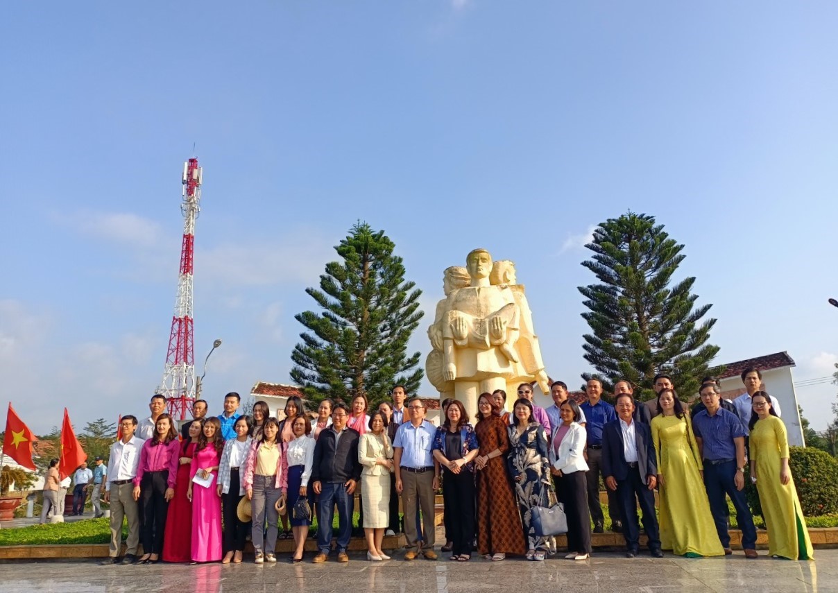 Đoàn công tác Ban Tuyên giáo Tỉnh ủy dâng hương và chụp ảnh lưu niệm tại Tượng đài chiến thắng Hà Lam - Chợ Được