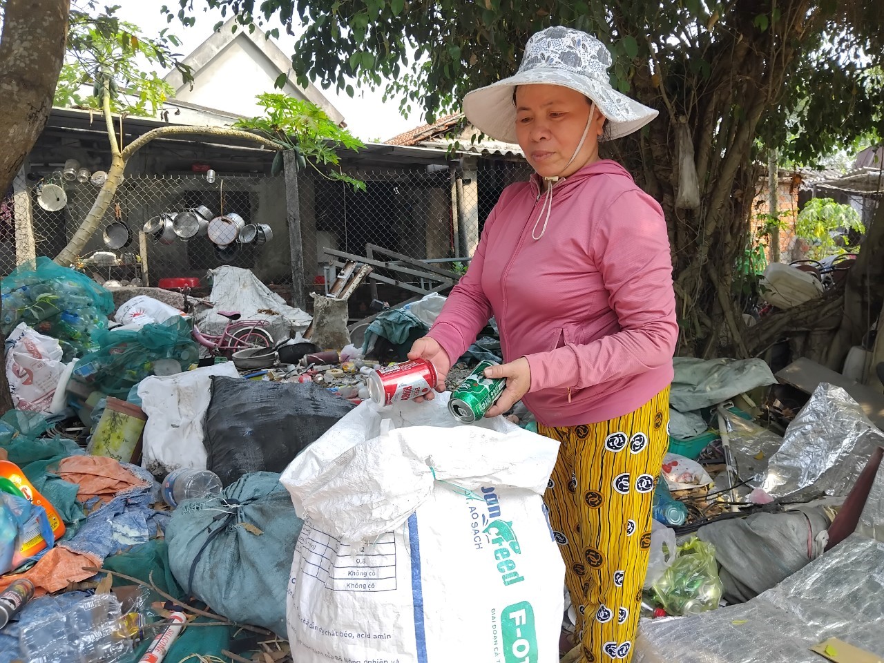 Mỗi khi nhà có đám tiệc có được ít vỏ lon hoặc ít ve chai, gia đình bà Phan Thị Nở (thôn Bình Tuý) đều dành dụm lại để bán cho chị Lê để trừ dần vào tiền phí rác thải hàng tháng.