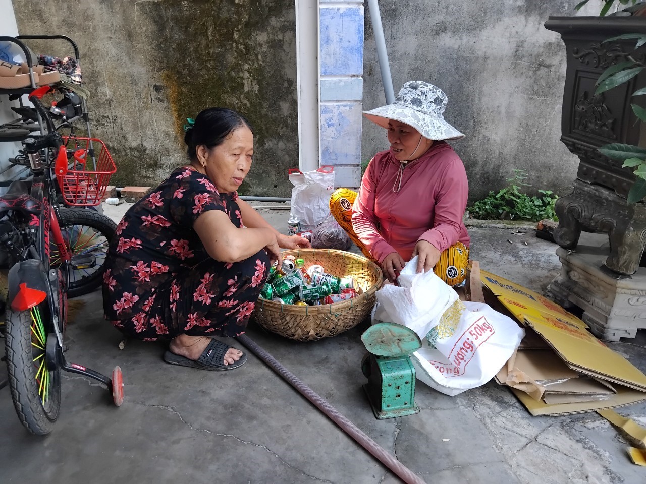 Số tiền bán ve chai ở từng hộ gia đình không nhiều, nhà nào có đám tiệc thì mới bán được vài chục ngàn đồng. Từ những đồng tiền ít ỏi thu mua ve chai, chị Lê đã nghĩ ngay đến ý tưởng cấn trừ vào tiền nộp phí vệ sinh môi trường hàng tháng (24.000 đồng/hộ/tháng).