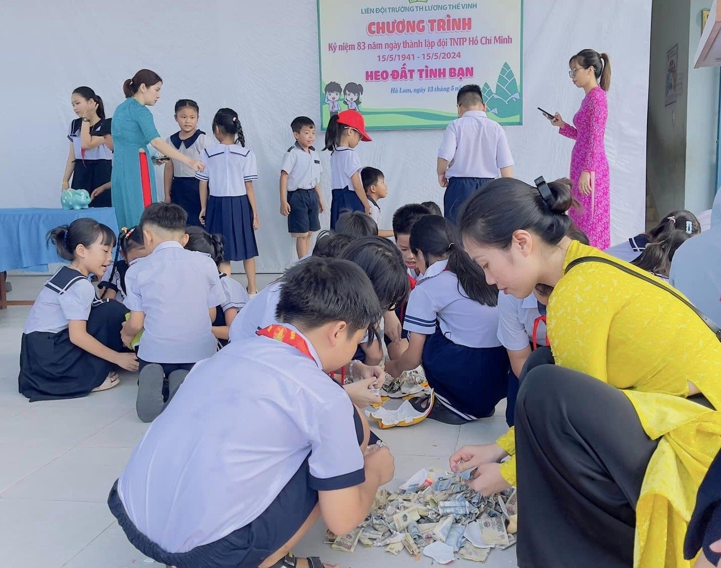 Tại đây, các em đã quyên góp được trên 19 triệu đồng để ủng hộ các bạn có hoàn cảnh đặc biệt khó khăn của trường. Phong trào tiết kiệm “Heo đất giúp bạn đến trường” được Liên đội nhà trường phát động từ nhiều năm nay. Đến nay, phong trào nhận được sự hưởng ứng tích cực của học sinh, phụ huynh toàn trường và mang lại nhiều ý nghĩa thiết thực.