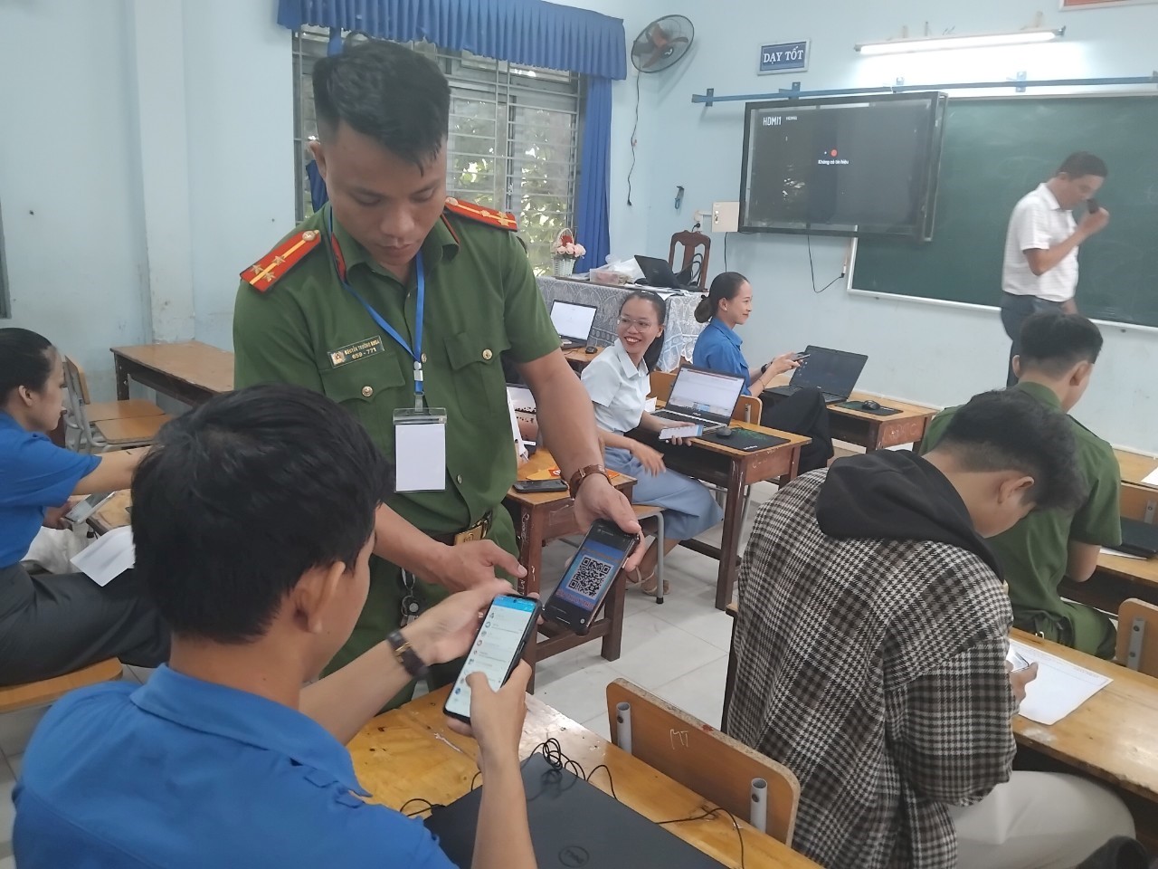 (Ảnh: Quét mã QR dự thi thực hành và lý thuyết)