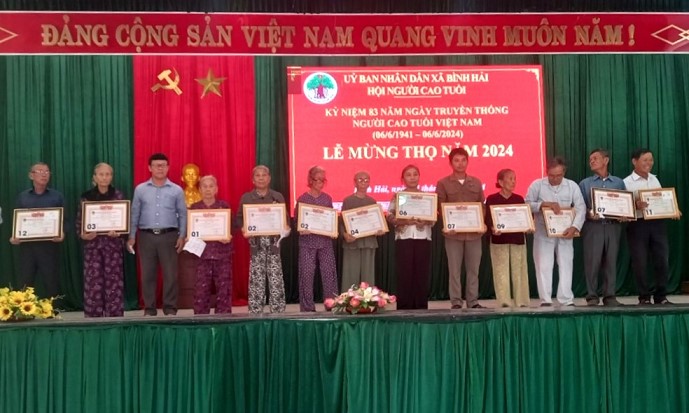 Lãnh đạo xã Bình Hải gửi lời chúc, thăm hỏi động viên các cụ sống vui, sống khỏe