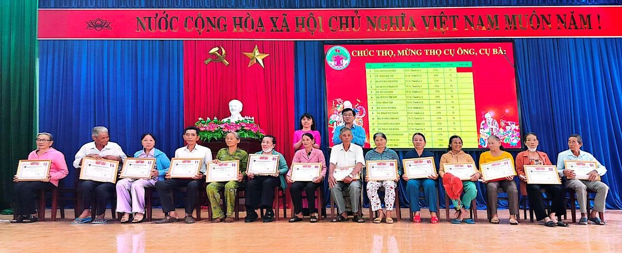 Trong dịp này, toàn xã có 160 cụ được chúc thọ, mừng thọ. Trong đó có 90 cụ tròn 70 tuổi, 22 cụ tròn 75 tuổi, 18 cụ tròn 80 tuổi, 11 cụ tròn 85 tuổi, 12 cụ tròn 90 tuổi,1 cụ tròn 95 tuổi, 6 cụ trên 100 tuổi với tổng kinh phí thực hiện gần 100 triệu đồng được chi theo quy định tại Nghị quyết 08/2019 của HĐND tỉnh.