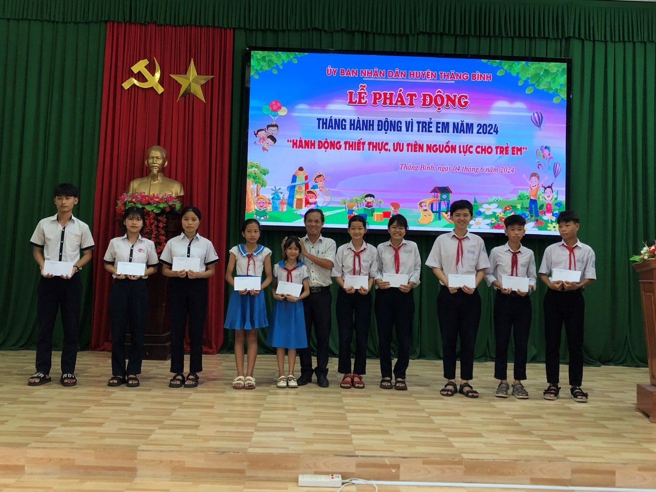Dịp này, Quỹ bảo trợ trẻ em huyện Thăng bình tặng 30 suất quà (500 ngàn đồng/suất) cho trẻ em khó khăn các xã Bình Triều, Bình Giang, Bình Nguyên và Bình Phục.
