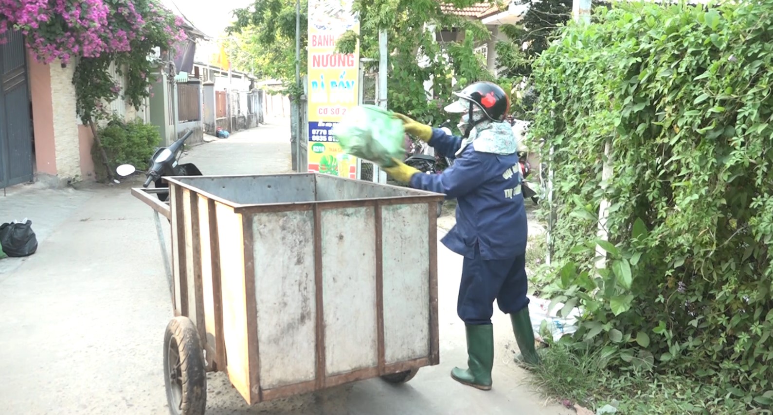 Chị Nguyễn Thị Lài (thị trấn Hà Lam) gắn bó với việc thu gom rác thải đã hơn 11 năm