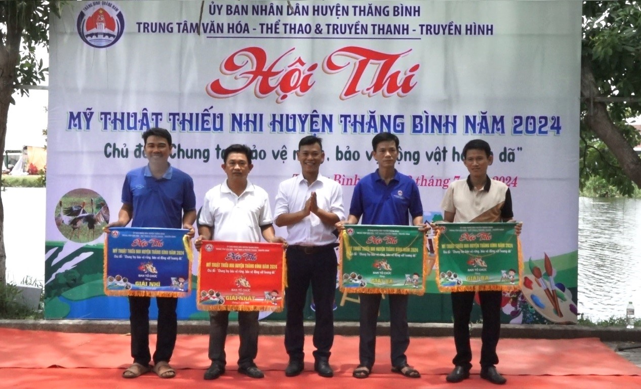 Ông Trần Hữu Phước – Phó Giám đốc Trung tâm VH - TT & TT - TH huyện Thăng Bình trao giải toàn đoàn cho các đơn vị