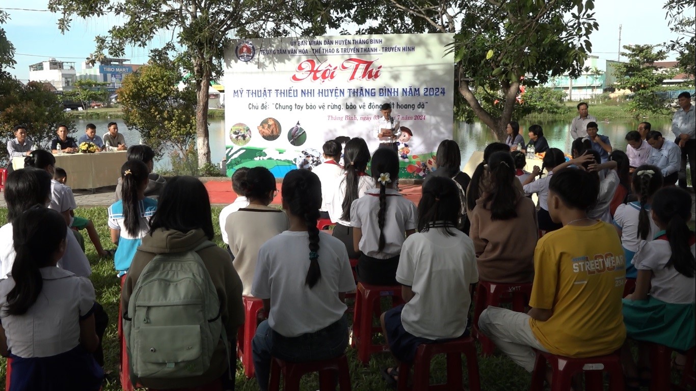 Với chủ đề “Chung tay bảo vệ rừng, bảo vệ động vật hoang dã” các thí sinh của 2 khối Tiểu học và THCS đã phát họa tác phẩm tranh bằng các loại chất liệu màu, xé giấy dán để nêu bật chủ đề tham gia bảo vệ rừng, bảo vệ động vật hoang dã, góp phần xây dựng môi trường sống an toàn, lành mạnh cho trẻ em và cộng đồng.