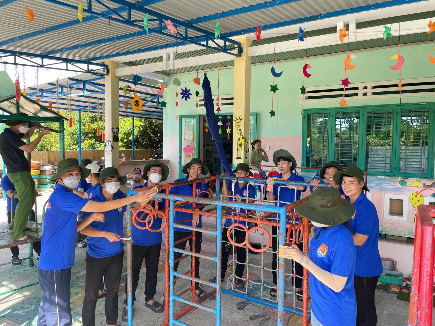Làm sân chơi cho điểm trường mẫu giáo Hưng Mỹ, xã Bình Triều