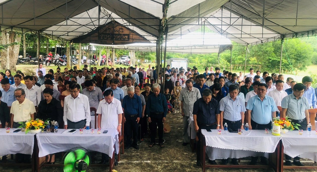 (Ảnh: Các đại biểu và nhân dân thôn Linh Cang mặc niệm tưởng nhớ Tổng Bí thư)