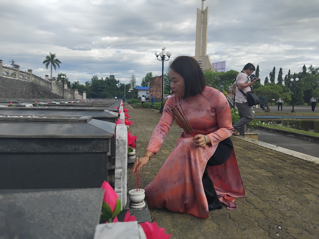Trưởng ban Dân vận Tỉnh ủy Huỳnh Thị Thùy Dung thắp nhang tại các ngôi mộ