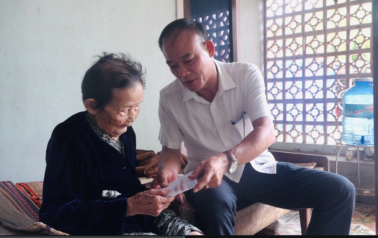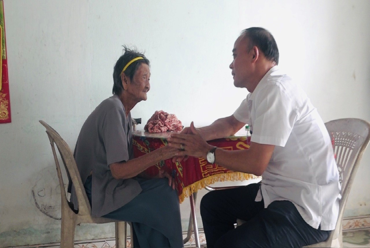 Đồng chí Lê Quang Hạt ân cần thăm hỏi sức khoẻ những người có công cách mạng cao tuổi