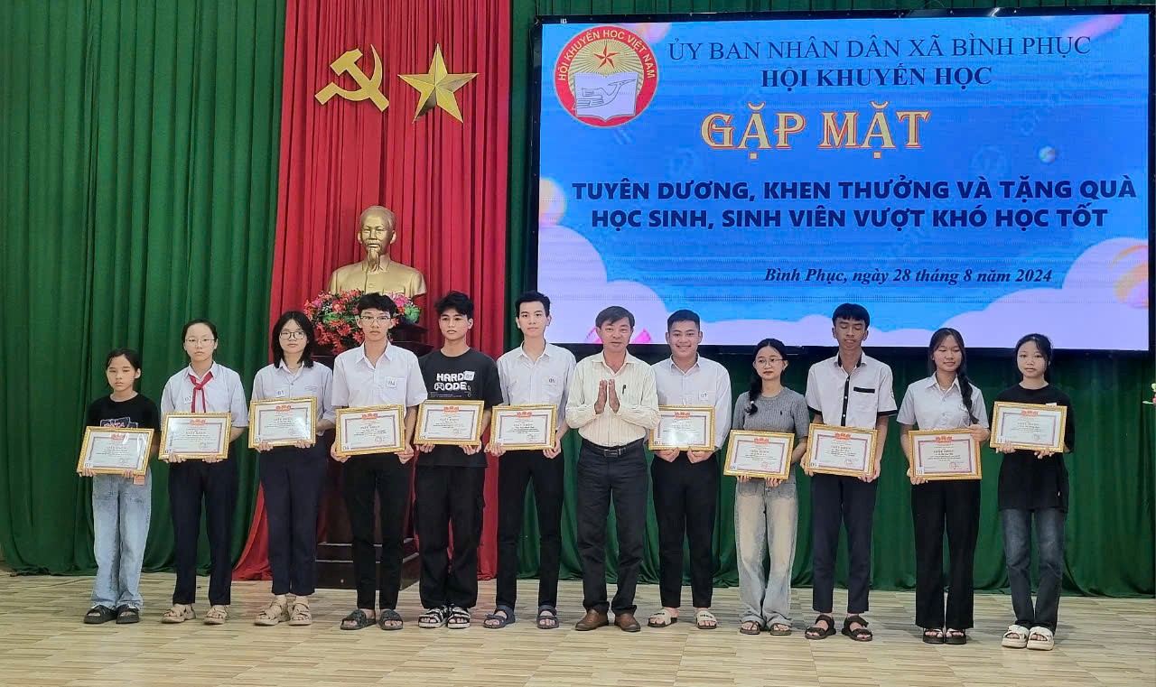 (Ảnh: Lãnh đạo xã Bình Phục tuyên dương cho học sinh, sinh viên xuất sắc)