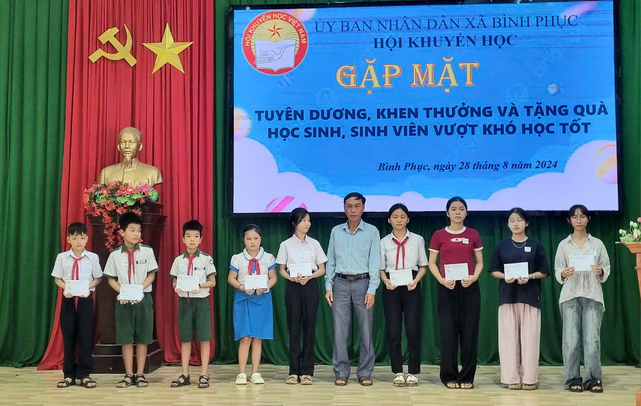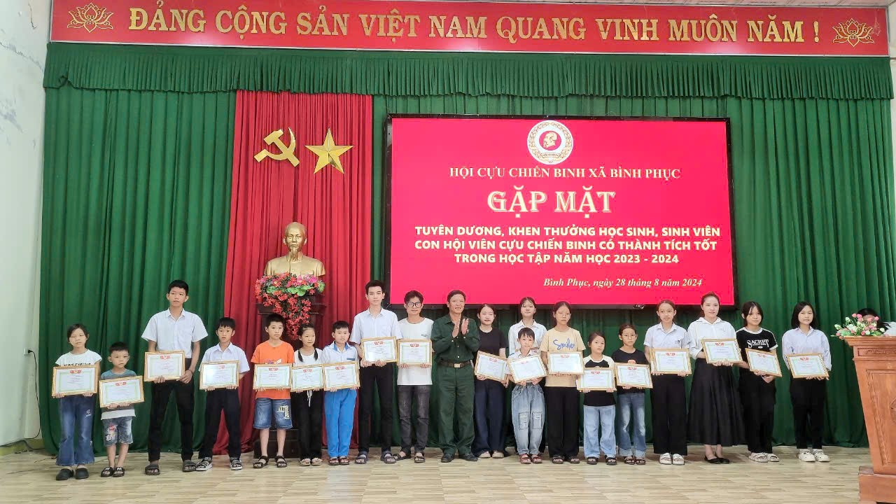 Dịp này, Hội Cựu chiến binh và Công đoàn xã Bình Phục cũng đã trao 45 suất quà cho con hội viên cựu chiến binh và con cán bộ, công nhân viên chức có thành tích học tập giỏi, xuất sắc năm học 2023 - 2024 vừa qua.