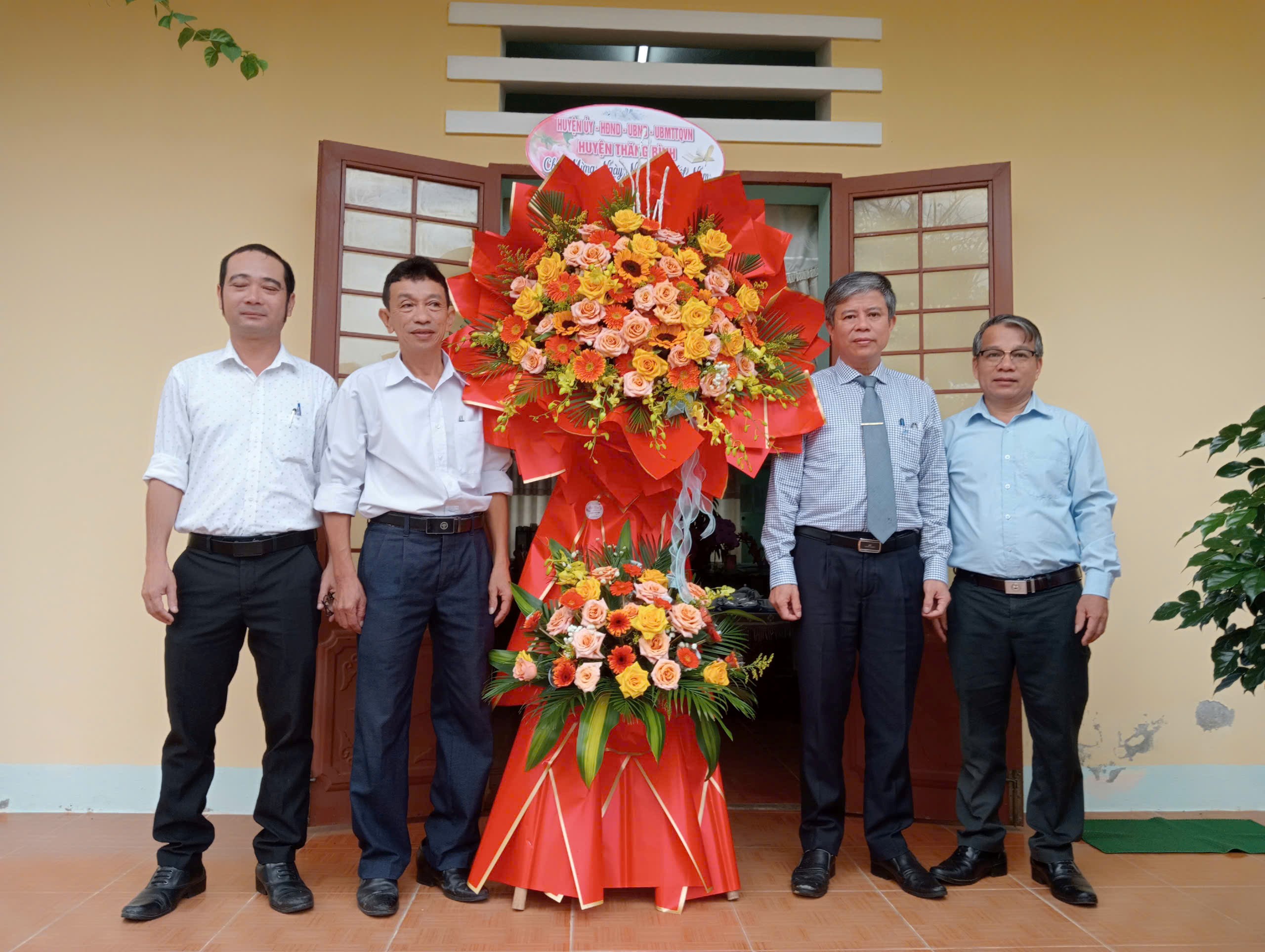 Chủ tịch UBND huyện Võ Văn Hùng tặng hoa chúc mừng trường THCS Trần Quý Cáp