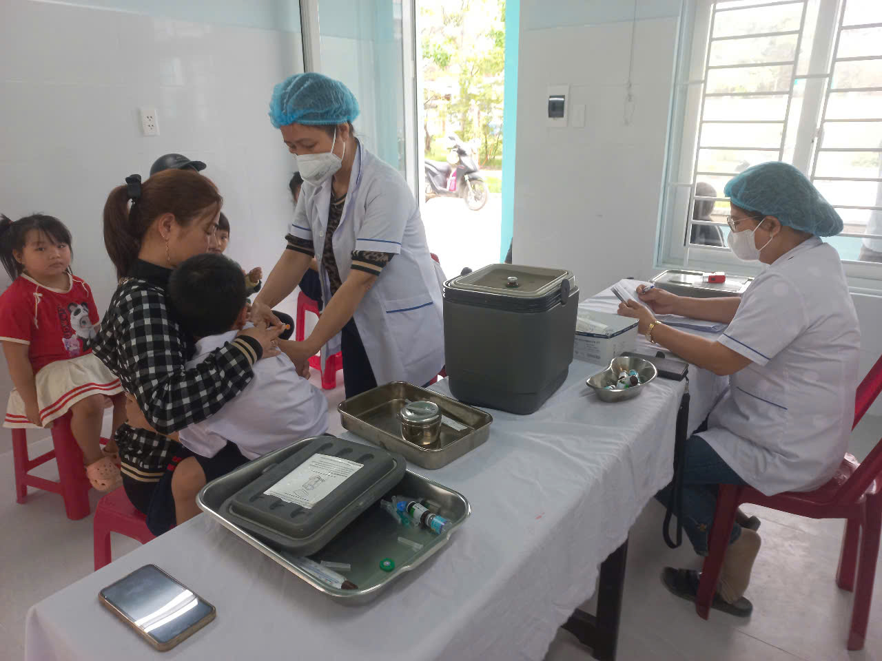 Trạm y tế Bình Trung tổ chức tiêm vắc xin sởi cho trẻ