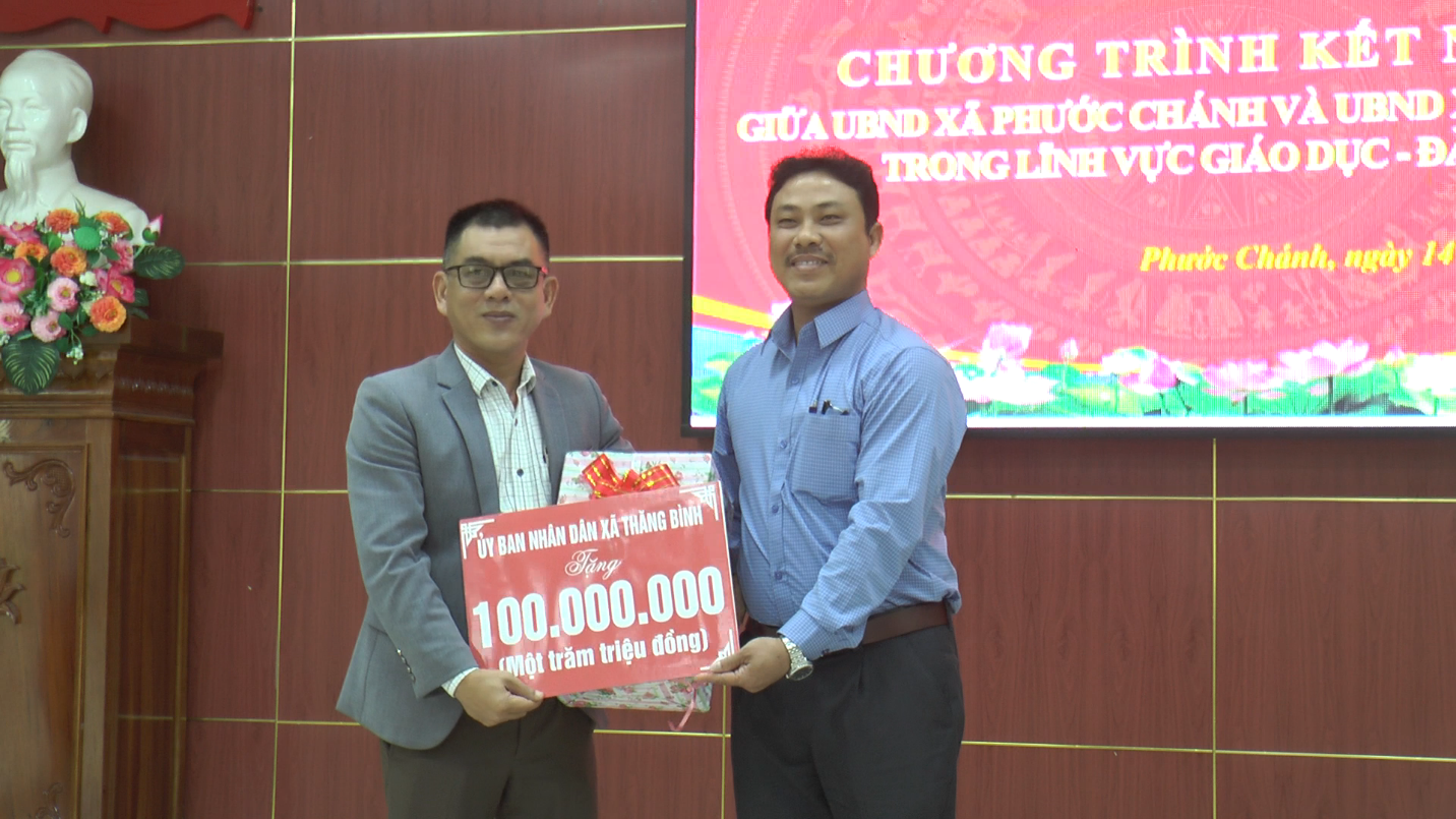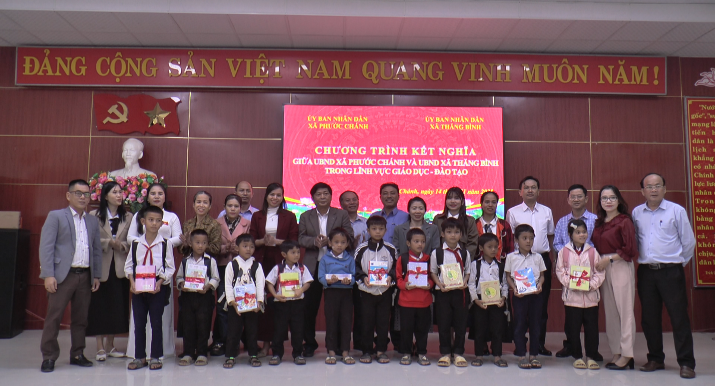 Tại buổi làm việc, UBND xã Thăng Bình đã trao tặng 100 triệu đồng cùng nhiều phần quà gồm: vở, cặp sách, áo quần, đồ dùng – dụng cụ học tập và một số nhu yếu phẩm. Đây là nguồn hỗ trợ được vận động từ cán bộ, giáo viên, phụ huynh và học sinh của 20 trường trên địa bàn xã nhằm chia sẻ khó khăn với học sinh Phước Chánh; đồng thời, hỗ trợ các nhà trường mua sắm thêm trang thiết bị phục vụ công tác chăm sóc, nuôi dưỡng và giảng dạy.
