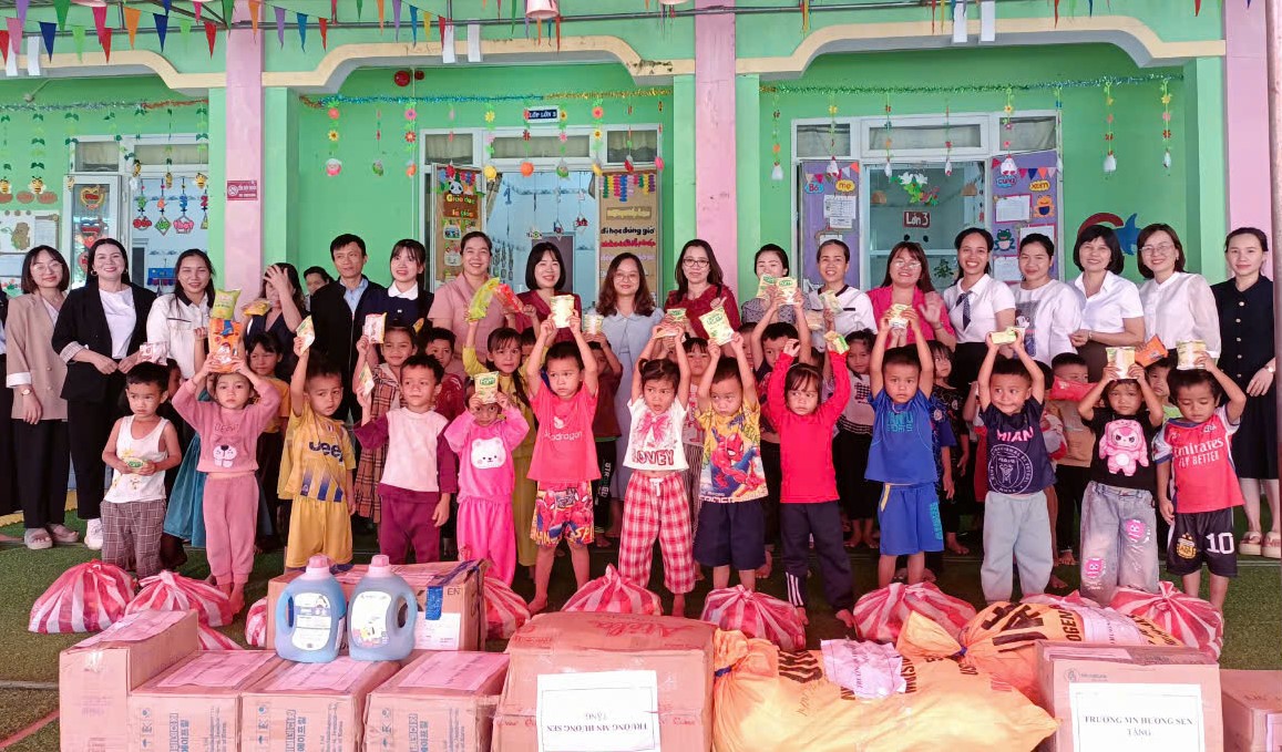(Đoàn thăm và trao quà cho các em học sinh trường Mầm non Phước Chánh)