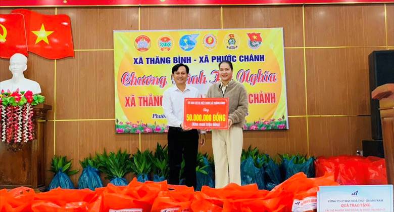 Không chỉ dừng lại ở việc hỗ trợ vật chất, chương trình đặc biệt chú trọng đến giải pháp tạo sinh kế bền vững cho người dân địa phương. Thông qua sự kết nối của Công đoàn xã Thăng Bình, Công ty May Hòa Thọ đã trao tặng 20 triệu đồng tiền mặt và 40 suất quà cho các hộ nghèo, khó khăn; đồng thời trực tiếp tư vấn, giới thiệu việc làm cho lao động tại xã Phước Chánh. Theo đó, người lao động khi tham gia làm việc tại doanh nghiệp sẽ được đào tạo nghề miễn phí, hỗ trợ chỗ ở trong thời gian làm việc, tạo điều kiện thuận lợi để ổn định thu nhập, yên tâm gắn bó lâu dài và từng bước cải thiện đời sống.