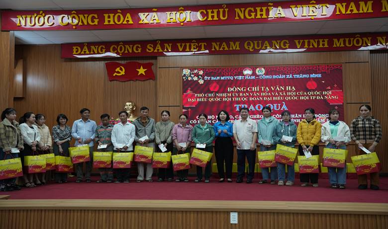 Tham dự và trực tiếp trao quà có đồng chí Tạ Văn Hạ - Phó Chủ nhiệm Ủy ban Văn hóa và Xã hội của Quốc hội, Đại biểu Quốc hội khóa XV thuộc Đoàn Đại biểu Quốc hội thành phố Đà Nẵng; cùng đại diện Liên đoàn Lao động thành phố Đà Nẵng, lãnh đạo Đảng ủy, HĐND, UBND, Ủy ban MTTQ Việt Nam xã Thăng Bình và đại diện các tổ chức chính trị - xã hội trên địa bàn.