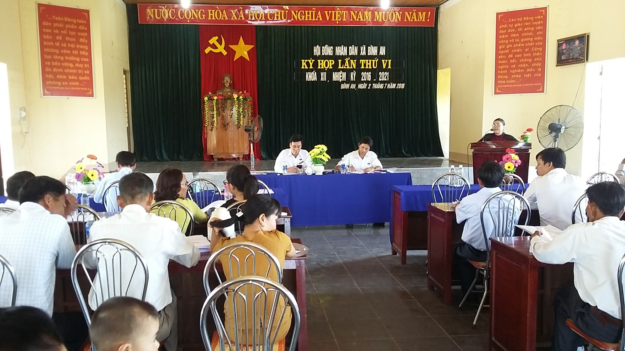 Qua báo cáo của UBND xã, tình hình kinh tế - xã hội đầu năm 2018 của xã Bình An tiếp tục phát triển . Thu nhập bình quân đầu người đạt 35,6 triệu đồng/năm. Công tác cải cách hành chính, Quản lý đất đai, vệ sinh môi trường, y tế, giáo dục, văn hóa, xã hội, TDTT tiếp tục được thực hiện tốt. Tình hình an ninh chính trị, trật tự, an toàn xã hội được giữ vững. Thu, chi ngân sách đảm bảo đúng chỉ tiêu, kế hoạch được giao. Trong đó tổng thu ngân sách 6 tháng đầu năm trên 5 tỷ đồng đạt 100,12% so với chỉ tiêu huyện giao. Đang triển khai thực hiện khai thác quỹ đất ở sân vận động Bình An. Bên cạnh đó, Chính quyền địa phương cùng với UBMTTQ phối hợp giải quyết tốt những ý kiến, kiến nghị của cử tri trên tất cả các lĩnh vực mà cử tri quan tâm.