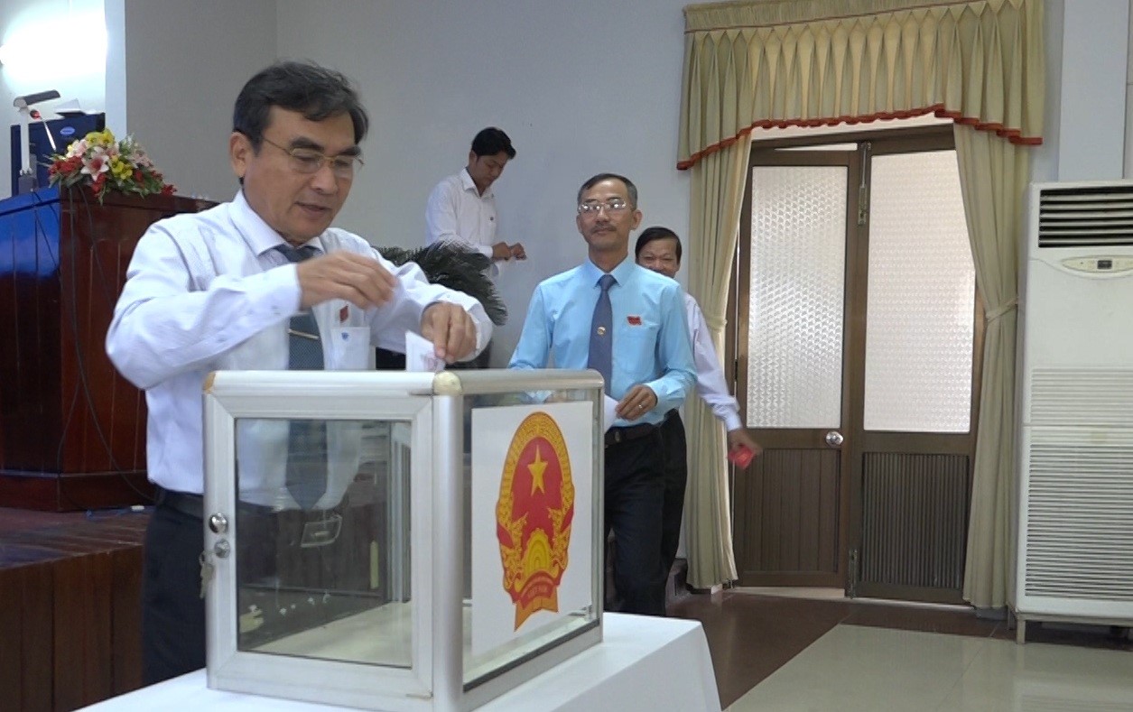 (Ảnh: Các đại biểu bỏ phiếu bầu bổ sung Ủy viên UBND huyện nhiệm kỳ 2016 - 2021)