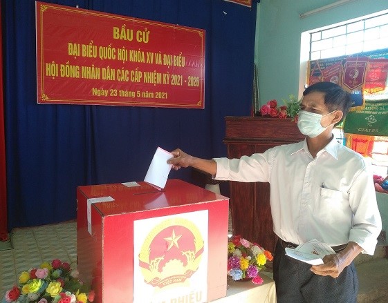 Cử tri Bình Lãnh (Thăng Bình) bỏ phiếu bầu cử đại biểu Quốc hội khóa XV và đại biểu HĐND các cấp nhiệm kỳ 2021 – 2026.