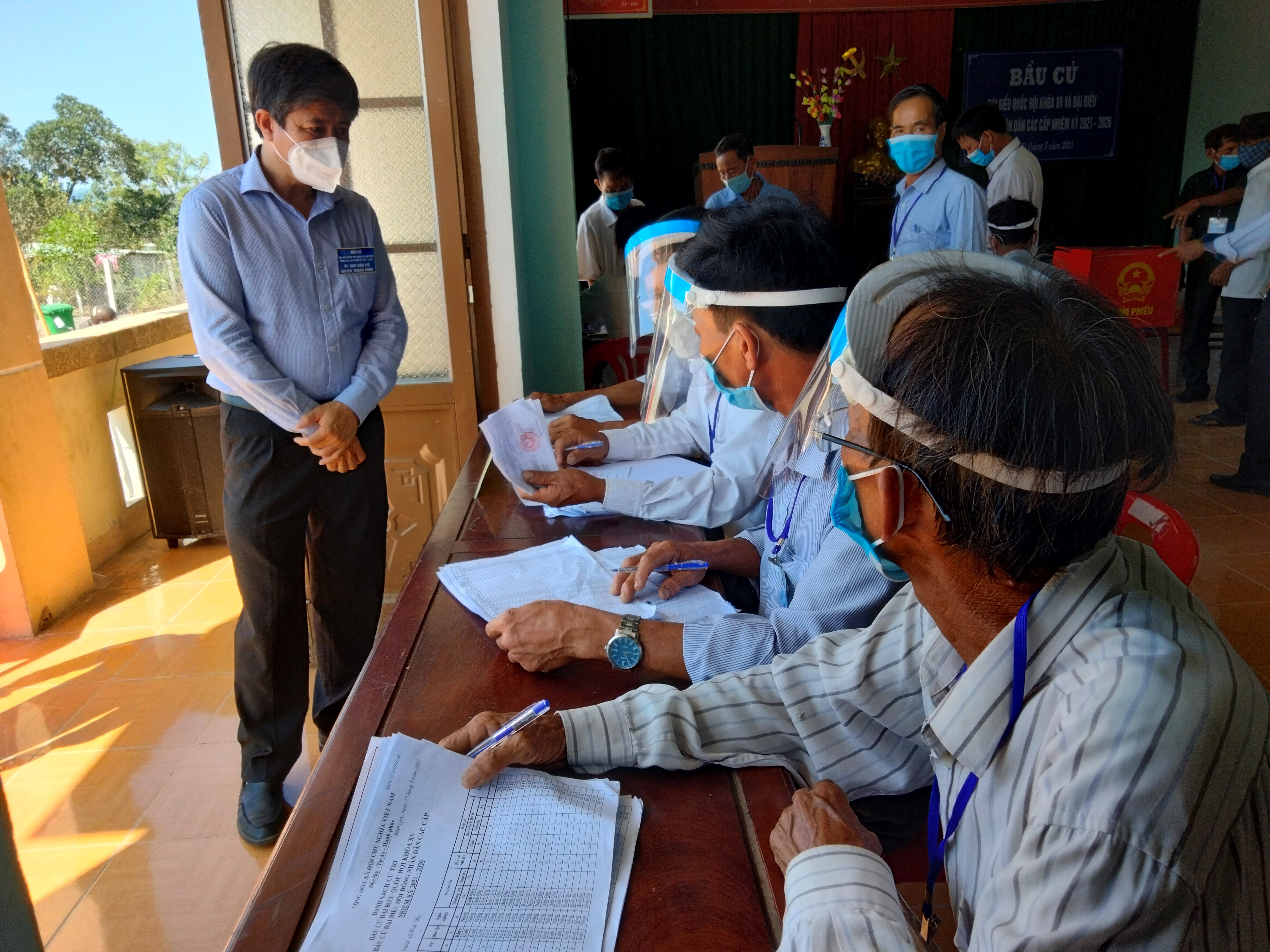 Chủ tịch UBBC huyện Võ Văn Hùng kiểm tra bầu cử tại điểm bầu cử số 6 Bình Qúy