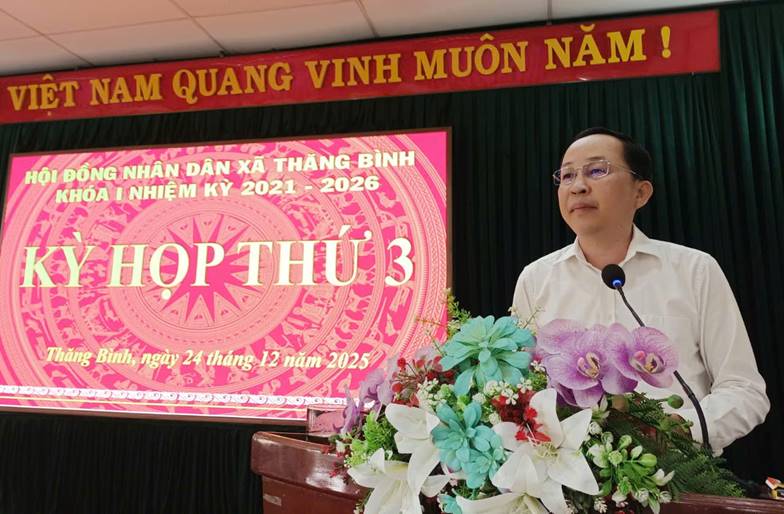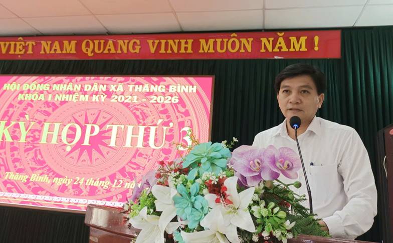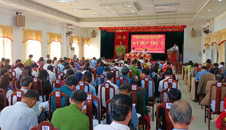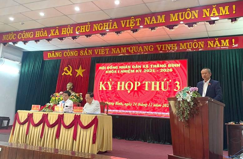 (Quang cảnh kỳ họp HĐND xã xã Thăng Bình khóa I, nhiệm kỳ 2021–2026)