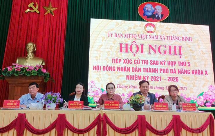 Báo cáo tại buổi tiếp xúc, đại diện tổ đại biểu số 11, HĐND thành phố Đà Nẵng đã thông tin đến cử tri kết quả kỳ họp thường lệ cuối năm 2025 của HĐND thành phố, trong đó tập trung vào các nội dung quan trọng liên quan đến tình hình phát triển kinh tế - xã hội, quốc phòng - an ninh, công tác an sinh xã hội, đầu tư hạ tầng đô thị và những nghị quyết quan trọng được HĐND thành phố thông qua như Nghị quyết Quy định mức chi công tác phí, chi tổ hội nghị đối với các cơ quan Đảng, Nhà nước, Ủy ban Mặt trận Tổ quốc, tổ chức chính trị - xã hội, các tổ chức hội được Đảng và Nhà nước giao nhiệm vụ, đơn vị sự nghiệp công lập trên địa bàn thành phố Đà Nẵng, nghị quyết Quy định chính sách trợ cấp hằng tháng, trợ cấp đột xuất đối với người có công với cách mạng và thân nhân của người có công với cách mạng trên địa bàn thành phố Đà Nẵng, Nghị quyết Quy định về mức chúc thọ, mừng thọ người cao tuổi trên địa bàn thành phố Đà Nẵng…