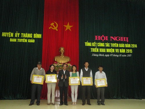 Dịp này, Ban Thường vụ Huyện ủy tặng giấy khen cho 04 tập thể và 05 cá nhân có thành tích xuất sắc trong công tác tuyên giáo, báo cáo viên và bản tin năm 2014.