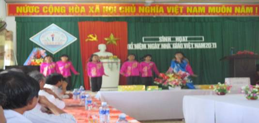 Tại buổi sinh hoạt, các trường đã ôn lại truyền thống ngày Hiến chương nhà giáo, những thành tích đạt được của trường cũng như những thành tựu chung của ngành giáo dục xã nhà trong thời gian qua. Qua đó, cũng nhắc nhở các em học sinh hãy cố gắng chăm ngoan, học giỏi xứng đáng là chủ nhân tương lai của đất nước. Buổi lễ còn là dịp để các em học sinh thể hiện lòng tri ân của mình đối với các thầy, cô giáo bằng những bông hoa tươi thắm và những tiết mục văn nghệ hấp dẫn do các em học sinh biểu diễn với nội dung thể hiện tình cảm, lòng biết ơn đối với thầy cô giáo.