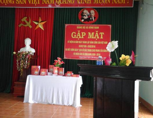Tại buổi gặp mặt, các Đại biểu đã ôn lại truyền thống hào hùng và những đóng góp của Đảng ta suốt 86 năm qua đối với sự nghiệp đấu tranh bảo vệ và xây dựng tổ quốc Việt Nam xã hội chủ nghĩa. Nhân dịp này, Đảng ủy xã đã tổ chức ra mắt tập sách “Lịch sử đấu tranh cách mạng của Đảng bộ và nhân dân xã Bình Nam (1930 - 2015)”.