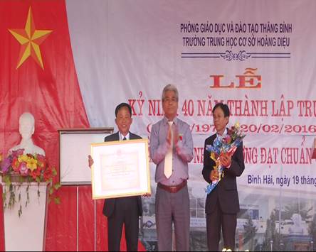 Thay mặt UBND tỉnh Quảng Nam, ông Nguyễn Văn Hương - HUV, Phó Chủ tịch UBND huyện trao Bằng công nhận trường đạt chuẩn quốc gia cho trường THCS Hoàng Diệu