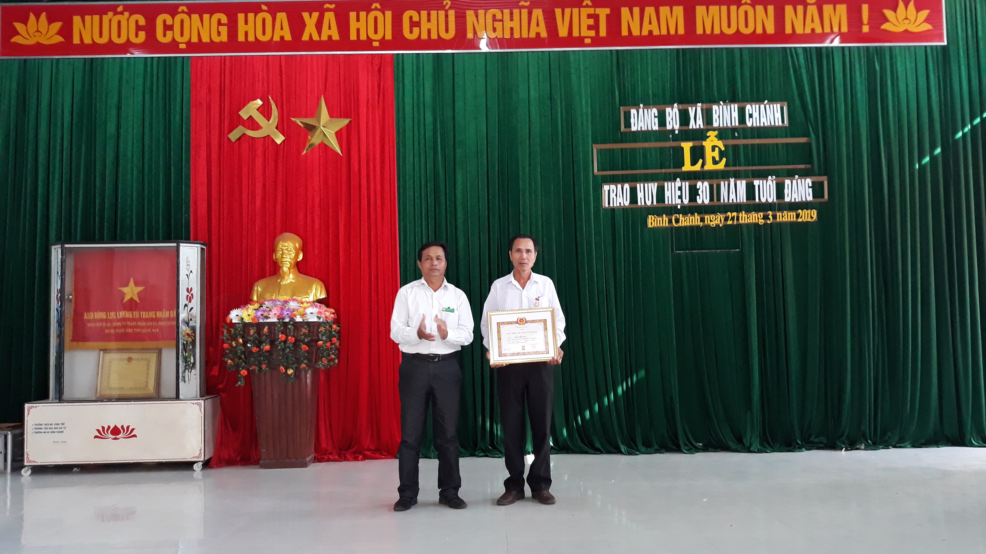 (Ảnh: Đ/c Phạm Hồng Việt - Bí thư Đảng ủy trao Huy hiệu 30 năm tuổi Đảng cho đảng viên)