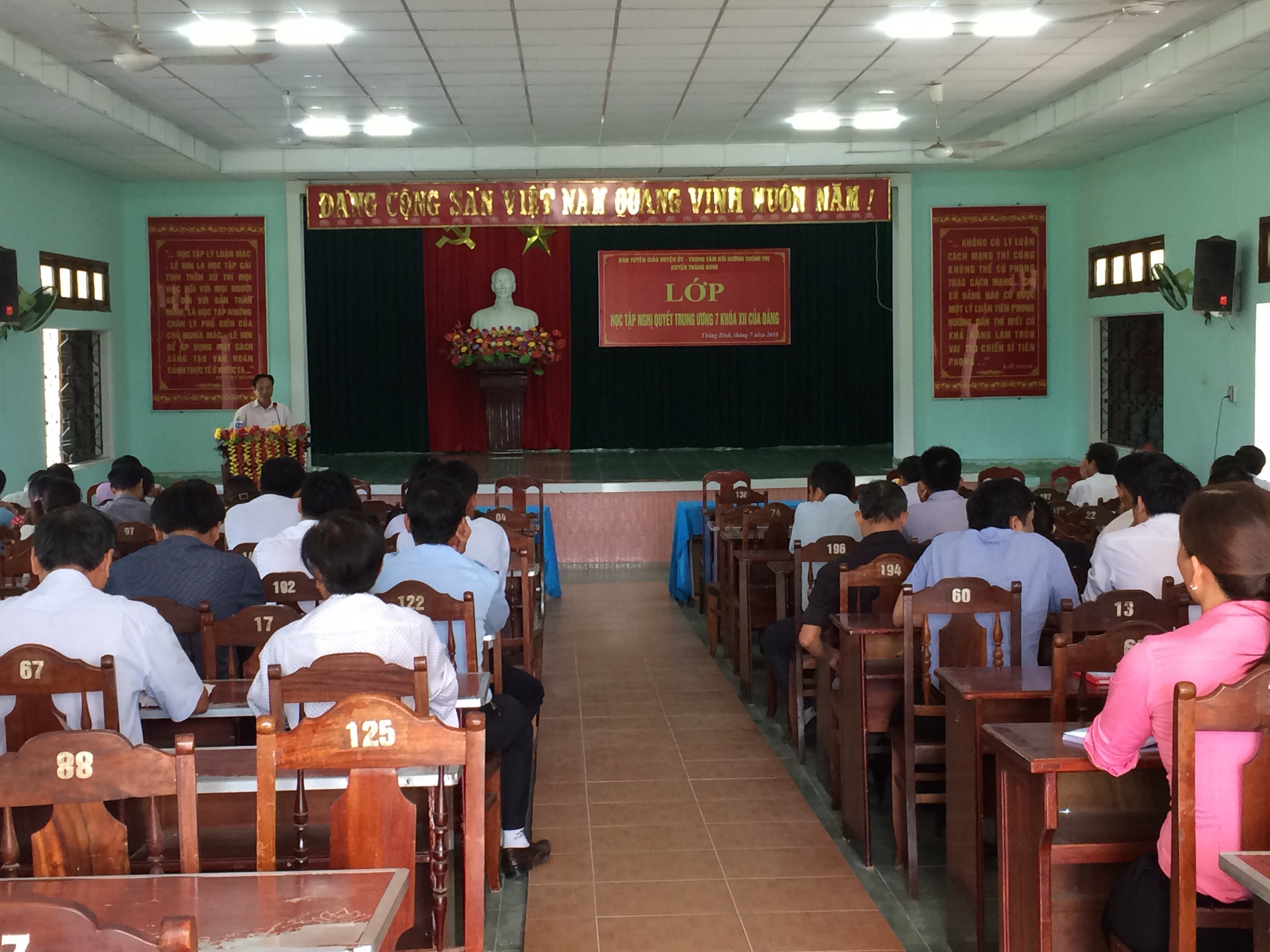 Được biết đây là 1 trong 3 lớp mà Ban Tuyên giáo Huyện ủy phối hợp với Trung tâm bồi dưỡng chính trị huyện mở cho cán bộ, đảng viên, công chức, viên chức thuộc các chi bộ khối cơ quan trực thuộc Huyện ủy. Sau khi học tập, quán triệt Nghị quyết, tất cả cán bộ, công chức, viên chức, đảng viên đang công tác ở các cơ quan, đơn vị đều phải viết thu hoạch cá nhân thể hiện nhận thức cá nhân về thực trạng (thành tựu, hạn chế và nguyên nhân), những điểm mới, quan điểm, mục tiêu, giải pháp trong các Nghị quyết Hội nghị Trung ương 7, khóa XII của Đảng; liên hệ với việc thực hiện nhiệm vụ chính trị của cơ quan, đơn vị và cá nhân.