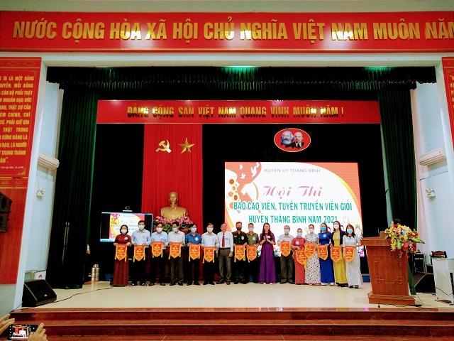 Sau quá trình thi, tuyển chọn từ cấp cơ sở, hội thi báo cáo viên, tuyên truyền viên giỏi huyện Thăng Bình năm 2021 đã thu hút sự tham gia của 22 thí sinh là báo cáo viên, tuyên truyền viên đến từ các tổ chức cơ sở đảng trong toàn huyện; cùng với đó, hội thi còn thu hút 10 thí sinh là báo cáo viên Huyện uỷ khoá XXI, nhiệm kỳ 2020 - 2025. Tham gia hội thi, các báo cáo viên trải qua 3 phần thi bắt buộc gồm: soạn đề cương, thuyết trình và trả lời câu hỏi. Hội thi là dịp để củng cố, nâng cao chất lượng đội ngũ báo cáo viên, tuyên truyền viên; tạo điều kiện để đội ngũ báo cáo viên, tuyên truyền viên trao đổi, học tập về kinh nghiệm, kỹ năng tuyên truyền miệng; đồng thời, phát hiện và biểu dương những báo cáo viên xuất sắc, góp phần đẩy mạnh và nâng cao chất lượng công tác tuyên truyền miệng và hoạt động của đội ngũ báo cáo viên, tuyên truyền viên.