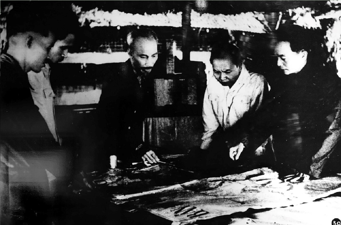 (Ảnh: Chủ tịch Hồ Chí Minh chủ trì cuộc họp bàn về chiến dịch Điện Biên Phủ, tháng 12/1953)