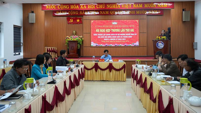 Tại hội nghị, các đại biểu đã được nghe báo cáo kết quả Hội nghị Hiệp thương lần thứ nhất; báo cáo tổng hợp kết quả giới thiệu người ứng cử của các cơ quan, đơn vị, tổ chức trên địa bàn xã. Trên cơ sở đó, hội nghị đã tiến hành thảo luận dân chủ, xem xét tiêu chuẩn, cơ cấu, thành phần và số lượng người được giới thiệu ứng cử theo quy định. Kết quả, hội nghị đã thống nhất lập danh sách sơ bộ gồm 50 người được giới thiệu ứng cử đại biểu HĐND xã Thăng Bình khoá II, nhiệm kỳ 2026 -2031, đảm bảo đúng cơ cấu, thành phần, tiêu chuẩn và quy trình theo luật định.